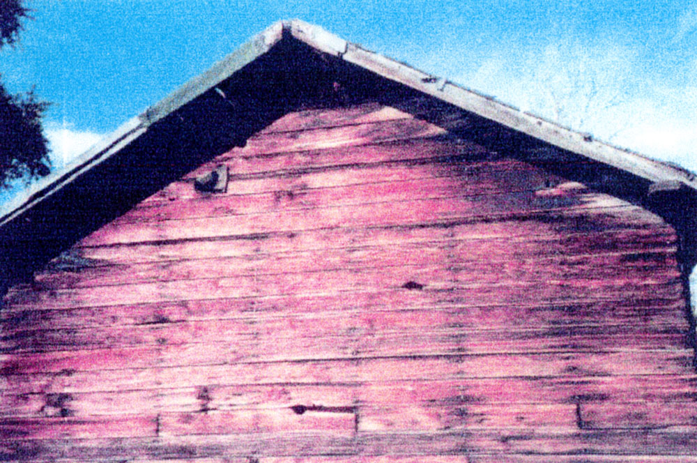 Lee’s cabin with the burn marks still visible.