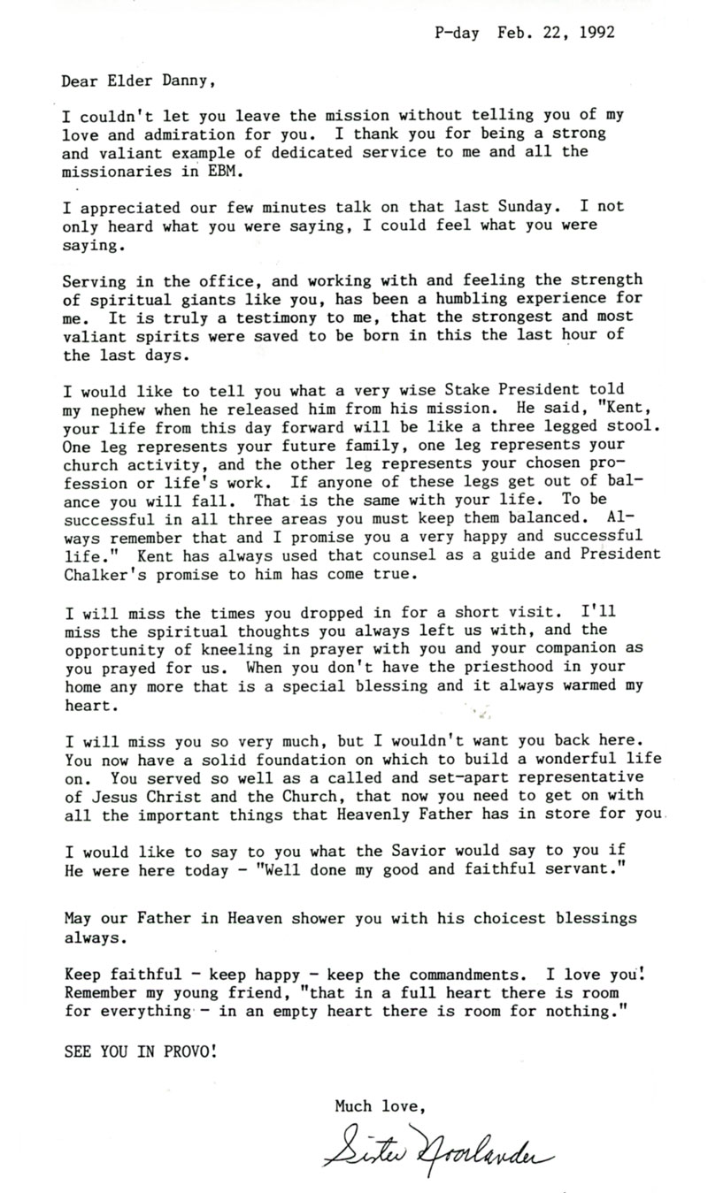I will miss you so very much, but I wouldn’t want you back here. You now have a solid foundation on which to build a wonderful life on. You served so well as a called and set-apart representative of Jesus Christ and the Church, that now you need to get on with all the important things that Heavenly Father has in store for you.