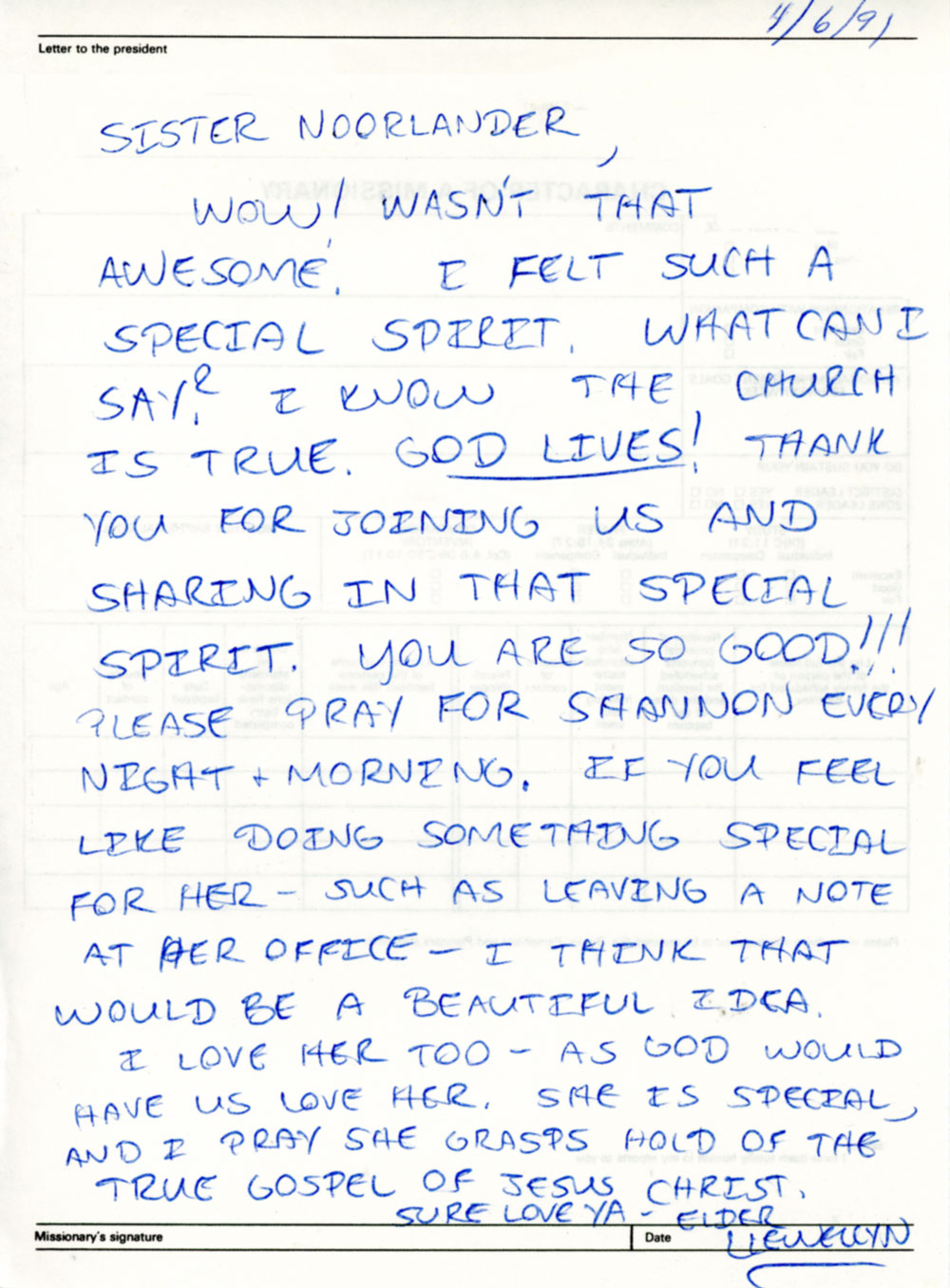 Much love, Sister Noorlander