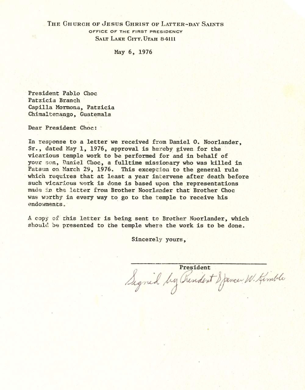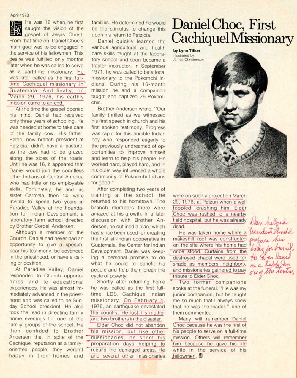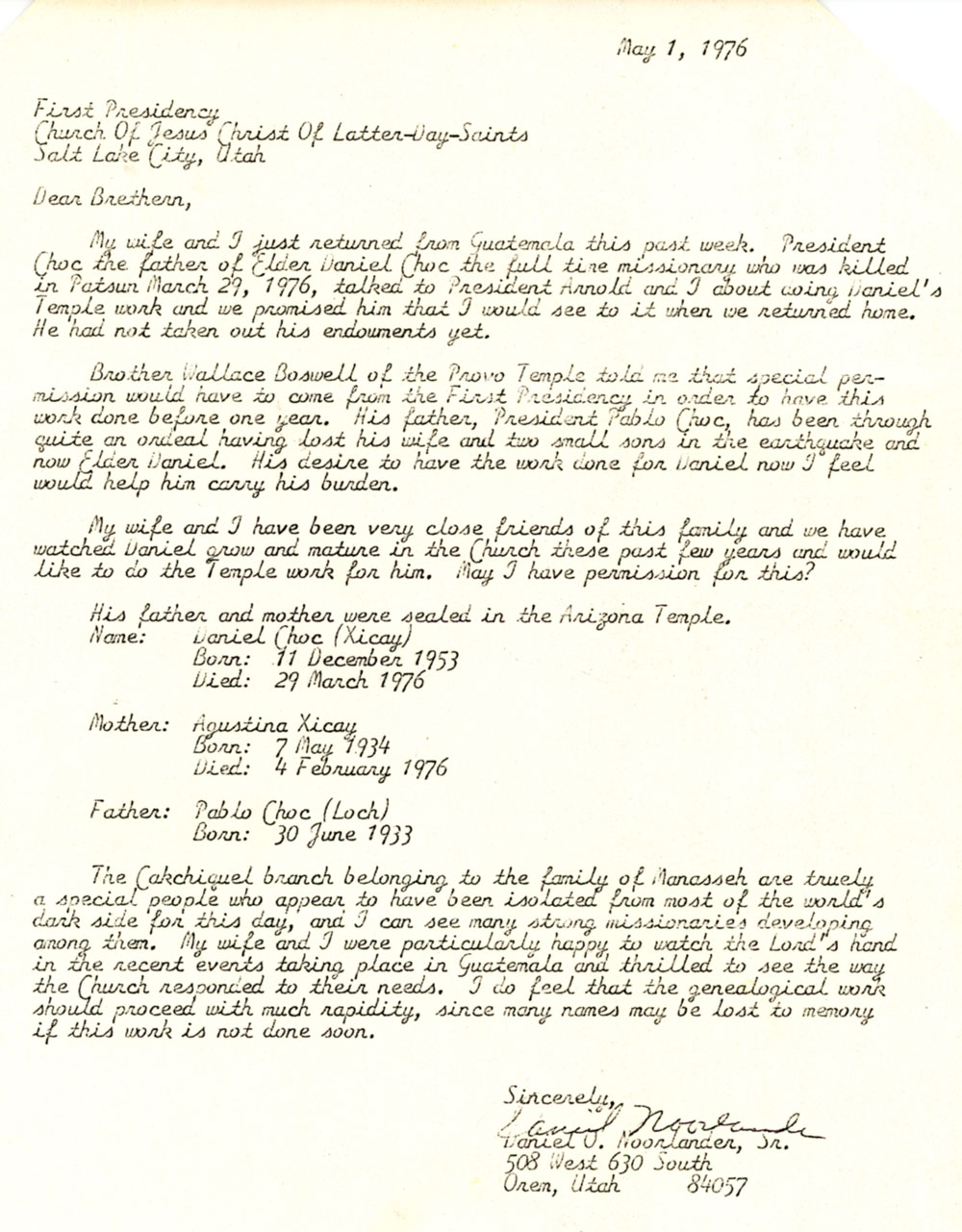Elder Choc’s mother and two brothers were killed in the earthquake. One has to believe that President Pablo Choc, Daniel’s father, was one of the great and noble ones in the world before this one. He never lost faith with God or his covenants.