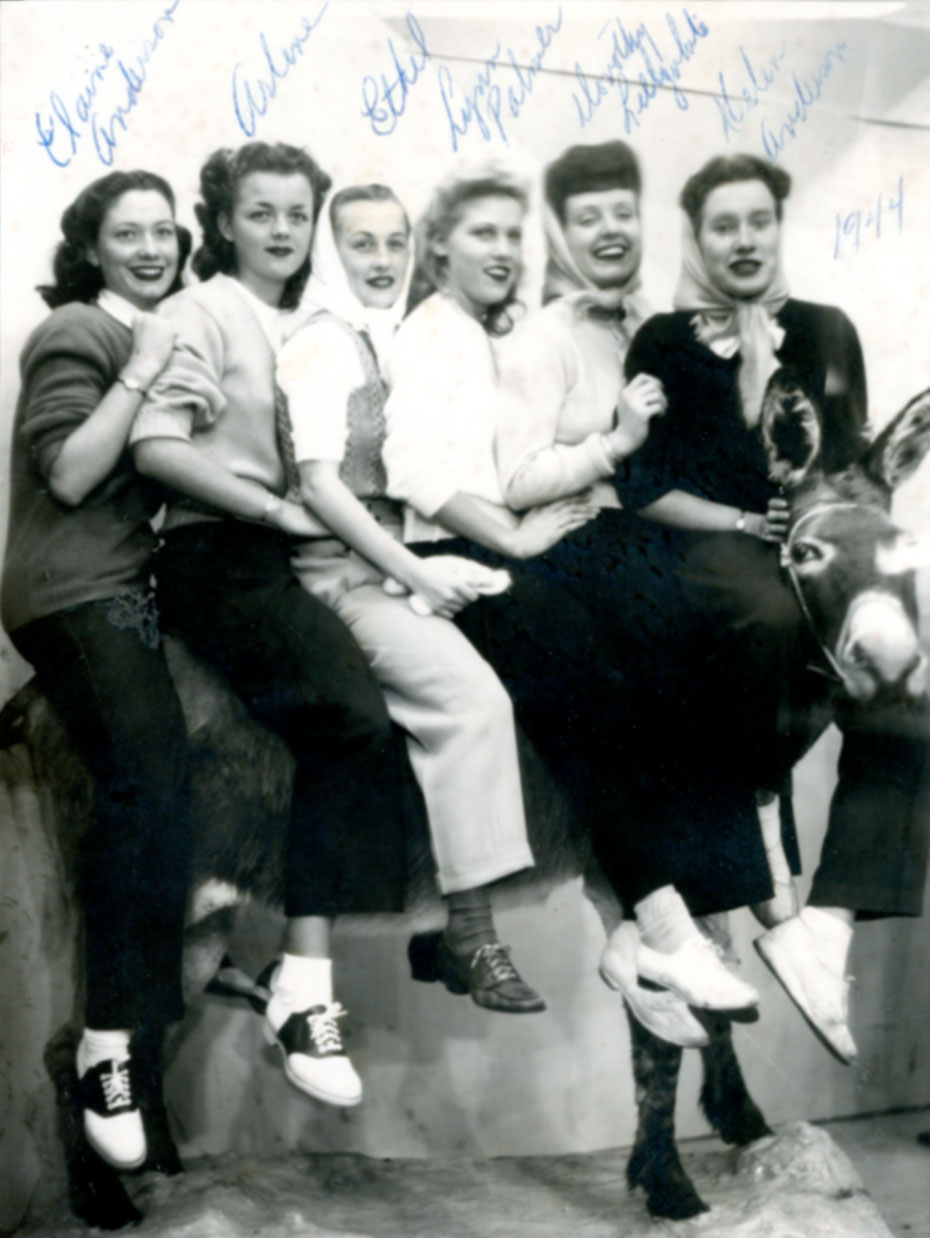 Inglewood, California. 1944. Pictured (L-R): Elaine Anderson, Arlene, Ethel, Lynn Palmer, Dorothy Lillywhite, Helen Anderson.